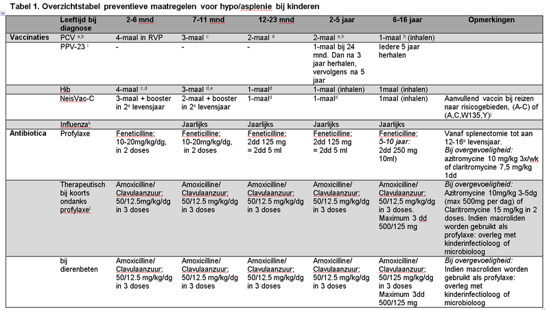 b = Van 2006-2010 hebben zuigelingen binnen het RVP PCV-7 gekregen. Vanaf april 2011 wordt overgegaan op PCV-10. Er is echter ook PCV-13 geregistreerd. Indien een kind gevaccineerd is met PCV-7 of PCV-10 en het blijkt een (functionele) asplenie te hebben, dan wordt aanbevolen alsnog te vaccineren met PCV-13. Indien dit bekend is vóór de leeftijd van 2 mnd, starten met PCV-13. Indien de asplenie bekend wordt tijdens de RVP-vaccinatieserie, deze gewoon afmaken en vervolgens alsnog 2 doses PCV13 toedienen, gevolgd door PPV-23 met een interval van minimaal 2 mnd.